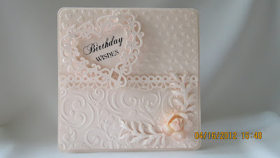 The bottom paper of both the old rose and yellow card were embossed using the same Cuttlebug embossing folder Musical Flourish' used on the mono-chromatic card.